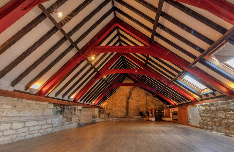 The Great Hall was for the use of banquets, Guild meetings and the room would have been at least 15 inches higher and probably running the full length of the building and would have been the grandest room in the West Range.